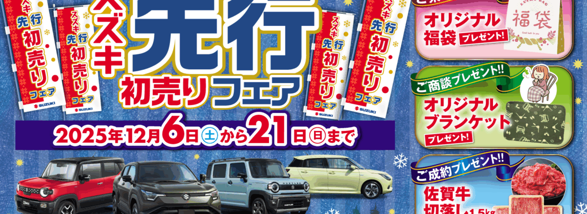 先行初売りで決めるのが絶対お得! 豪華「成約プレゼント」付き!スズキ正規ディーラーの信頼と、地域に根ざした安心のサポート!さのげんは、富士・富士宮地域で最も長くスズキ車を扱ってきた正規ディーラーです。長年の経験と確かな知識を活かし、お客様が安心してカーライフを楽しめるようサポートしてきました。スズキの車…