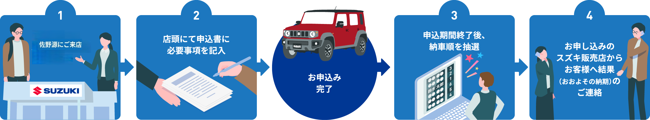 上記期間中にお申し込みいただいたすべてのお客様を対象に、厳正なる抽選にて「納車順」を決定いたします。